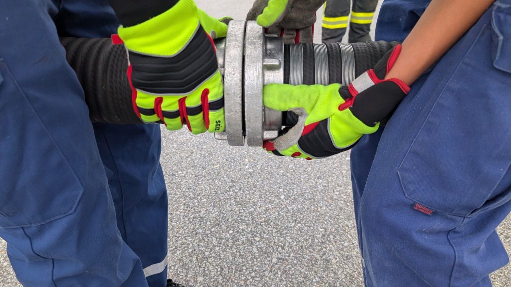 Die erste Gruppe hat sich mit dem Thema Schaumangriff beschäftigt. Dieser ist ein Teil der Abnahme und musste somit genau geübt werden. Was wurde für den Schaumangriff benötigt: